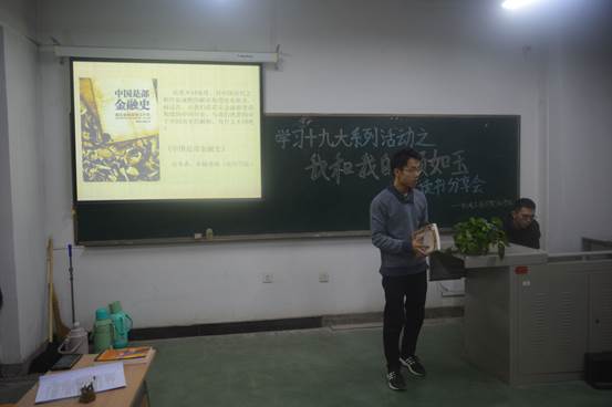 活动伊始,主持人致开场白并依次介绍出席嘉宾。伴随着PPT的每一帧播放,分享会徐徐展开:面对深奥的《中国是部金融史》,朱楠老师站在经济学的角度向我们阐述了从古至今王朝的更替与历史变迁的是非,使大家对中国历史有了新的认知;程喜喜倾情解说,将一部《悲惨世界》讲解的惟妙惟肖,将一个人的精神世界分析的淋漓尽致,为大家献上了一幅真实透彻的人间因果图;通过《撒哈拉沙漠的故事》,戴亚澳将三毛的人生经历向同学们娓娓道来,奇幻的沙漠美景,真实的探险经历,无不牵动着所有听众的心灵;由秘书长分享的《乱世佳人》主题鲜明,至死不渝的爱情催人泪下,逆境中这个柔弱女子的奋斗史更是让在座同学叹服。在各位同学激烈的掌声中,分享会圆满结束。