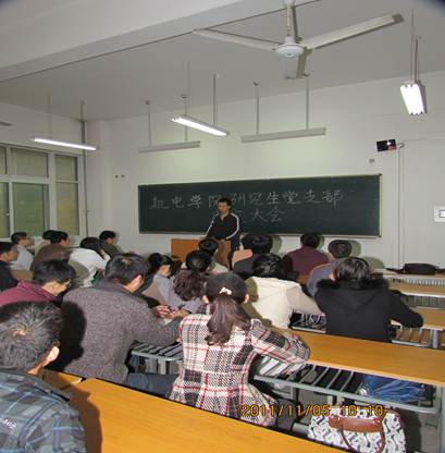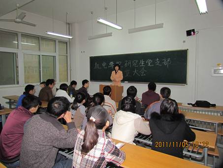 2011年11月5日上午,西安工大机电学院研究生党支部成立大会在未央校区教A楼216室隆重举行。会议由机电学院学生党总支书记姚敏茹老师主持。永利集团883042011级所有研究生党员参加了会议。