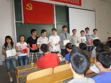 国家奖学金获得者代表马丽娜,优秀党员代表姜晓龙、宋佳等同学先后做了事迹报告。