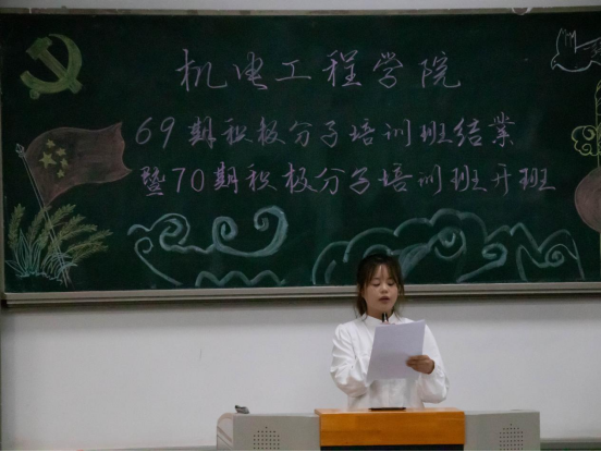 第70期积极分子代表成家豪发言。他表示,我们要做到严守纪律,勤学善思;知行合一,勇担使命;团结协作,共同成长。以更饱满的热情、更扎实的行动,争取早日成为一名光荣的共产党员!