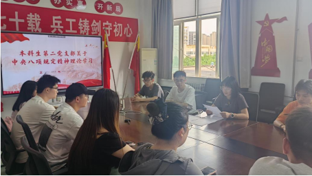 为深入学习贯彻习近平总书记关于加强党的作风建设的重要论述,推动中央八项规定精神在青年党员中入脑入心,5月14日永利集团88304学生第二党支部组织召开专题学习会议。支部全体党员、入党积极分子通过学习中央八项规定精神,深刻领会中央八项规定精神的核心要义与时代价值。