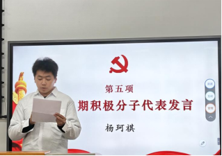 第71期积极分子代表成杨珂祺发言。他表示,我们要做到严守纪律,勤学善思;知行合一,勇担使命;团结协作,共同成长。以更饱满的热情、更扎实的行动,争取早日成为一名光荣的共产党员!