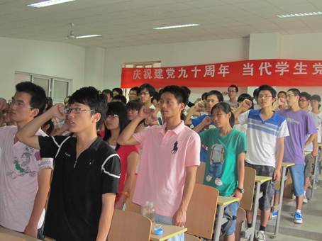 为展示新党员对党的无限忠诚,坚定其为革命事业奋斗终身的决心,抒发其为党九十华诞深深的祝福,机电学院组织数百名新入党党员面向党旗庄严宣誓。