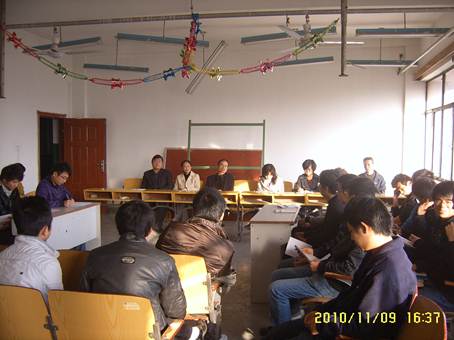 和风送爽,丹桂飘香。2010年11月5日至9日,为进一步贯彻落实期中教学检查工作要求,提高教学质量,永利集团88304分别于金花校区和未央校区召开期中教学检查座谈会。永利集团88304所有班级学习委员、学生代表(包含一本专业),连同试点班全体学生,参加了本次座谈会。同时出席的有永利集团88304副院长赫东锋老师,以及朱育权教授、高佳宏教授、连炜教授、万宏强副教授等老师。