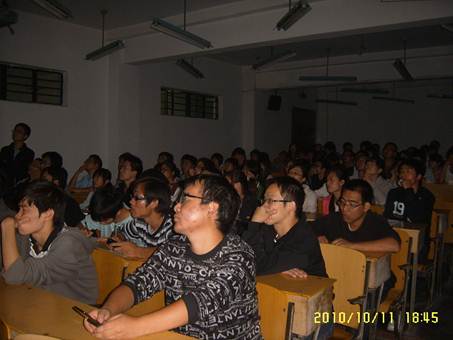 为隆重纪念中华人民共和国61周年华诞,讴歌共和国61年沧桑巨变,展现中国共产党领导各族人民取得的辉煌成就,激发我院师生爱国、爱校热情,永利集团88304学生党总支于10月11日晚上6:30,在金花校区举办了《建国大业》红色电影展播。永利集团88304学生党总支书记姚敏茹老师,07级辅导员杨飞、王智杰老师,08级辅导员陈伟伟老师等,同永利集团88304200余名正式党员、预备党员一起观看了此次放映。