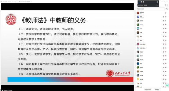 为增强教师法治观念与依法执教能力,加强师德师风建设,提升政治素养与职业规范,4月30日永利集团88304召开法治宣传教育,集中学习《中华人民共和国教师法》(以下简称《教师法》)。本次会议采用线上学习的方式,会议由学院党委书记程新峰主持,学院领导班子成员、全体教职工参与此次学习。