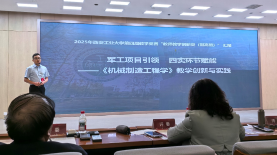 在决赛阶段的激烈角逐中,李蔚进行了以《数智赋能赛课融合——<工程材料与机械制造基础>课程教学设计及创新报告》为主题的汇报,以其深厚的学术造诣和富有前瞻性的教学模式拔得头筹,荣获正高组赛道一等奖。张耿以《军工项目引领四实环节赋能——<机械制造工程学>教学创新与实践》为主题进行了汇报,其创新的教学方法和显著的教学成效赢得了评委的高度认可,夺得副高组赛道一等奖。