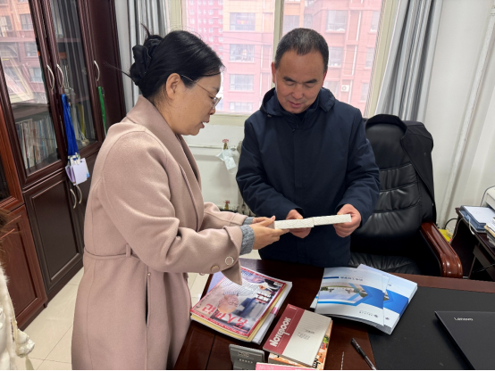 座谈结束后,姚敏茹一行实地查看了冯正阳的工作办公场所和生活环境,详细询问了其工作难点、生活需求,为其送上了学院的关怀与慰问物资。冯正阳对学院领导的专程看望表示衷心感谢,并表示将不负学院重托与学校期望,坚守支教岗位,深耕教学一线,以实际行动践行志愿服务精神,为宜君县高级中学的教育事业发展添砖加瓦。