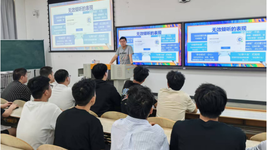 培训中,辅导员张晓君以校园案例切入,指出“敷衍式回应”“打断式倾听”等无效倾听行为,强调机械应答或急切插话会让同学感受被忽视,直接影响心理支持工作的开展。