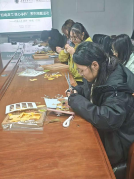 活动以“理念联结—指尖创作—心得传递”为脉络铺展。活动伊始,工作人员以兵工领域“物尽其用”的实践智慧为引,串联秋季落叶的自然属性与“变废为宝”的环保理念,让“创新奉献”的兵工精神与贴近生活的自然材料产生联结。讲解中,同学们观察着叶子的脉络与形态,紧绷的情绪也随落叶的舒展逐渐松弛。
