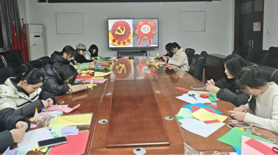手作实践环节,彩色卡纸、剪刀、胶水等工具摆上桌面,同学们沉浸式开启创作:有人专注雕琢纹样的细节,有人反复调整徽章的立体层次——在剪折、粘贴的专注操作中,大家将注意力聚焦于当下的创作,指尖的忙碌成了情绪的缓冲带,创作的沉浸感也让内心的浮躁慢慢沉淀。