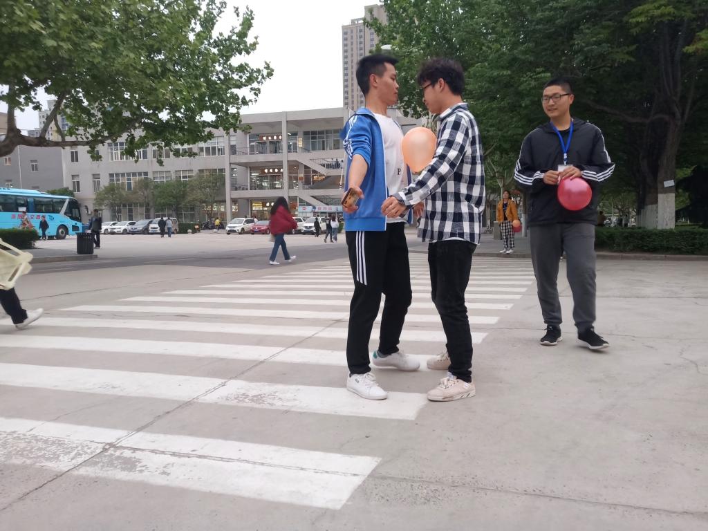 活动伊始,各游戏负责人依次上台讲解各个赛点的游戏规则。游戏在紧张又刺激的嘴刁纸片传面粉中拉开了序幕,随后分为室内环节和室外环节。室内进行知识问答和你画我猜,参赛人员各显其招,虽然难住了一大片人员,但也不乏有人陆续猜对了有趣的题目。室外游戏翻纸牌则利用眼力和脑力相结合的方法通关,夹气球环节则考验了团队协作能力,值得一提的是最后一棒的数字华容道却难倒了一大部分参赛选手。经过一番追逐之后,前六名队伍成功进入了决赛环节。决赛则为仿真版“第五人格”,参赛队伍在博苑广场寻找红包,红包里藏有四个技能,并设有黑衣人追捕。经过一番你追我赶,523队找到六个红包成功夺冠,其它队伍也不甘落后相继完成任务。最后由史宇和余成林为获奖队伍颁奖并合影留念。本次定向越野大赛在一片欢声笑语中完美落幕。