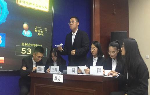大赛伊始,主持人通过一段简短的VCR介绍参赛队伍,随后是学生会代表刘安发言,他希望所有参赛队伍坚持友谊第一,比赛第二的原则,并且要做到胜不骄败不馁。比赛首先是正方文学院与反方我院针对“在外受挫是否要告诉父母”这一辩题展开的。主持人简单介绍后,比赛进入开篇立论环节,正方一辩用具有高度概括性的陈述为本场表论开篇立论,但是我方在阐述自己观点的同时巧妙的对正方的观点做出了质疑,不禁令人拍手称绝。在接下来的盘问环节和驳论环节,我方辩手引经据典灵巧地使用各种例子,一次又一次反驳击退对方。双方辩手站在自己的观点立场上肆意挥洒自己的语言魅力。比赛进行到最后迎来了四辩的结辩环节,我方四辩选手抓住正方在辩论过程中出现的语言漏洞,针砭时弊,犹如平地惊雷,让人眼前一亮。整个过程中我院选手处变不惊,镇定自若,以深厚的语言功底化解一个又一个的陷阱,可谓是你有你的现实矛,我有我的哲理盾。最终我院凭借完美表现赢得了本场辩论赛的胜利。