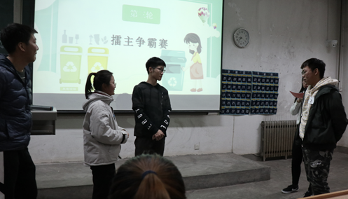 比赛伊始,由主持人向参赛选手们介绍决赛规则,之后便开始第一轮的比赛。第一轮由20支队伍每队分别派出3名参赛选手进行垃圾分类知识的车轮战,题目由易变难,由单选变成多选,选手们需自行判断并给出所有多选答案,最终决出10支队伍进入第二轮。第二轮比赛采用两人对抗竞赛积分制,首先由十支队伍各派出一人,两两一组,参赛者们有1分钟的时间记下大屏幕给出的垃圾及其分类,之后抢答大屏幕给出的问题,从1分到3分不等共五道题,答对己方队伍积分,答错对方积题目分值的一半分。第二轮比赛结束后,由工作人员统计分数并选取总积分前四的队伍进入第三轮擂台赛。统计过程中,主持人开展了一个面向观众们的垃圾分类知识答题,答对有奖,简短的四个小问题将大家的热情引向高潮,同时也将比赛推至最终环节——4人争霸赛。四名参赛选手抽签决定顺序,一人守擂,其他人攻擂,每道题10秒,答错即被淘汰,最终由经济管理学院的一支队伍摘得冠军。乔娜老师为进入第二轮的6支队伍颁发三等奖,王晶老师为进入第三轮的3支队伍颁发二等奖,马新厂老师为冠军颁发一等奖,之后嘉宾们分别同获奖队伍和工作人员合影留念,决赛圆满结束。