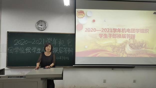 大会伊始,由党委副书记姚敏茹老师发表讲话。姚老师首先向各位团学干部提出表扬与赞赏,表扬了团学干部们为学院付出的行动和争得的各种荣誉,她表明大家的付出必有回报。其次姚老师提出希望各位团学干部加强自身建设、努力提高自己的能力,做好机电学院学生中学习与工作的“火车头”,提升自己的服务意识,为学院和同学们做好服务,带领学院的学风,将学院的工作带向新的高度。