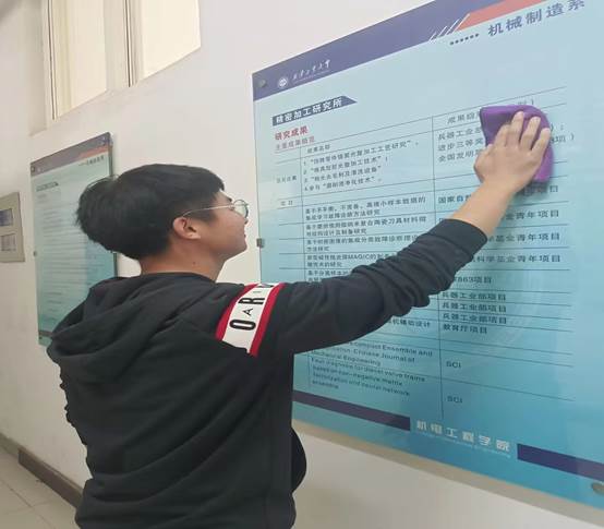 3月27号中午,参加活动的同学们,提前做好了各种准备,并且都满怀热情在工科二号楼等待着安排。在学生干部的带领下,大家拿起抹布,提起扫帚,分工合作,配合默契,共同清扫了大楼的各个角落。在大家的共同努力下,让大楼焕然一新。不仅如此,同学们在一起劳动中还收获了许多宝贵的经验,锻炼了自己。